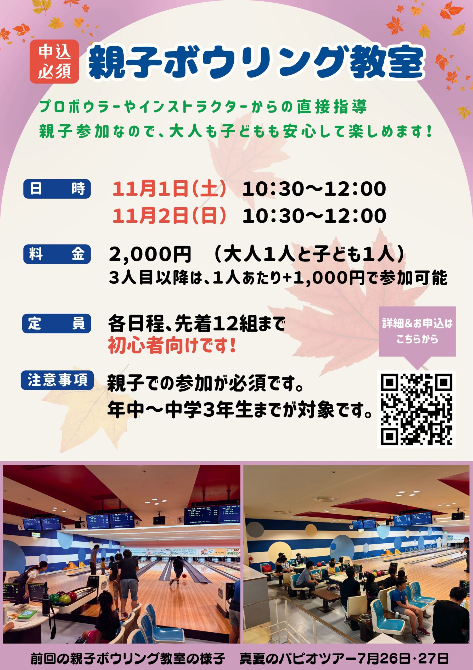 お盆に実施しまして好評を博しました親子ボウリング教室を、11月にも実施いたします!