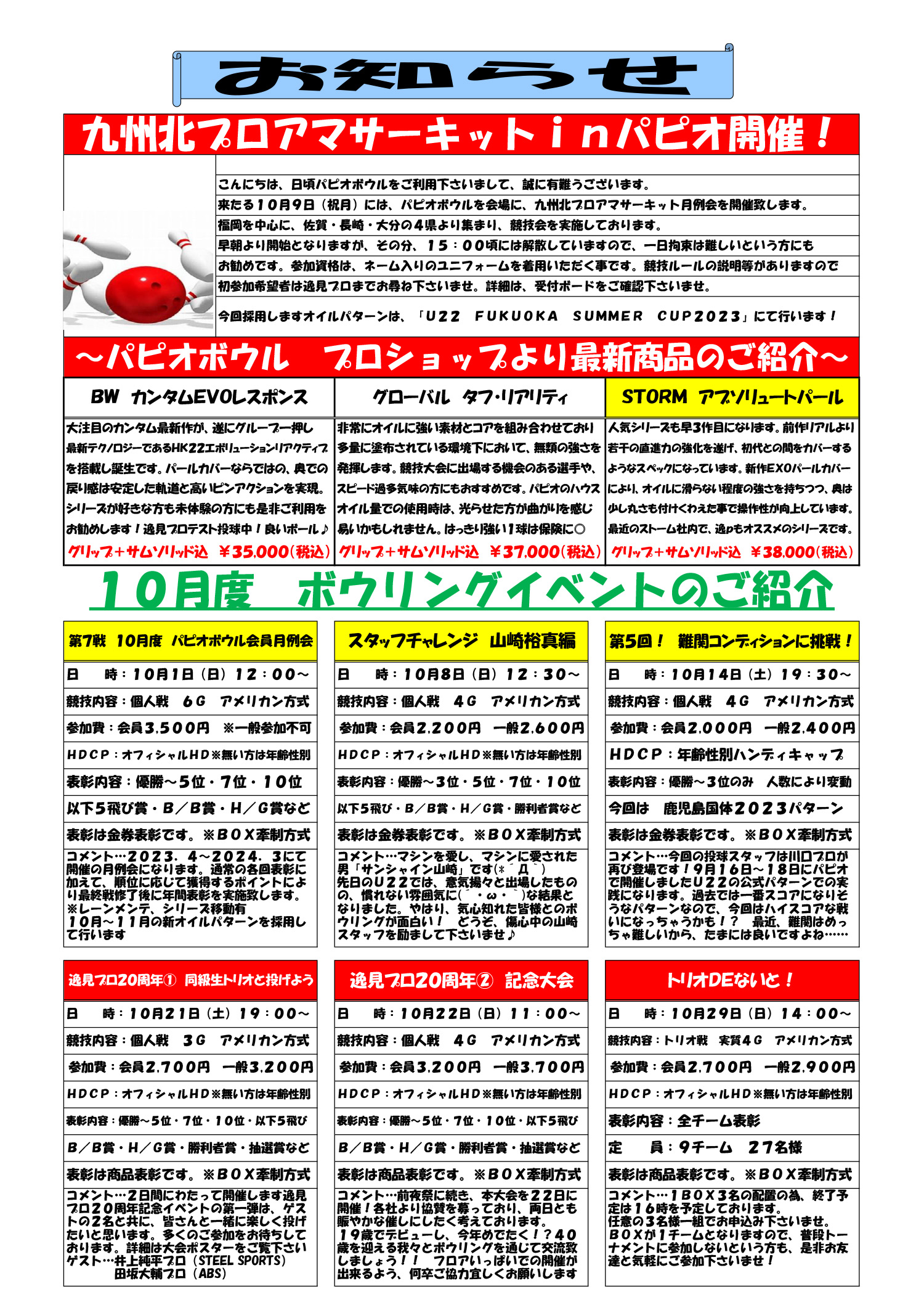 パピオボウル 10月度イベントカレンダー